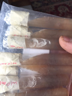 Then I carefully replace the foil cap on the tube. When I've repeated this for all of the slants I want to do, I put them in a ziplock bag and put them someplace warm to kind of 'bloom'. After a few days we should start to see evidence of yeast cells growing: